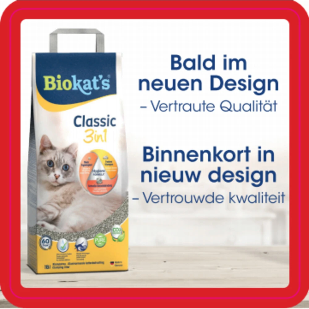 Biokatu0027s Kattenbakvulling Classic 3-in-1 Biokat’s Classic fresh is een grofkorrelige klontvormende kattenbakvulling gemaakt van puur natuurlijke klei. De classic variant van Biokatu0027s is geurloos.Biokat’s Classic bestaat uit 3 verschillende korrelgroottes: De grote korrels hebben bijzonder grote poriën. Net als een spons absorberen deze poriën vloeistoffen en geuren. Een handvol van de grote korrels heeft het oppervlak van een heel voetbalveld! De medium korre