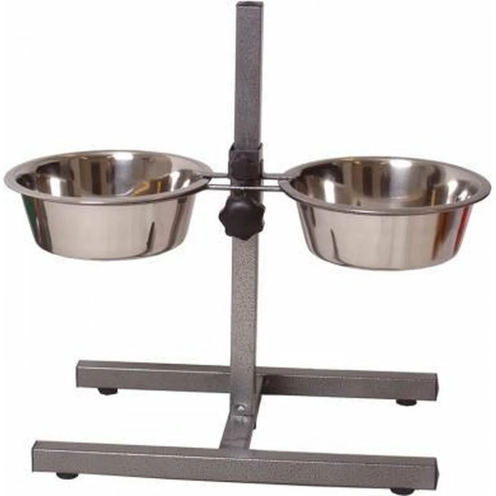Boon H-standaard Hamerslag met Rvs BakkenDeze handige verstelbare dubbele voerbakken zorgen ervoor dat jouw hond in de meest natuurlijke stand en houding eet en drinkt. De r.v.s. voerbakken zijn op de juiste hoogte te stellen (gelijke hoogte van de maag) middels de bijpassende hamerslag standaard. Eten in de normale rechtopstaande houding van de hond bevordert de spijsvertering en laat de hond in een meer ontspannen houding zijn voeding tot zich nemen. Door de bakken op gelijke hoogte van de maa
