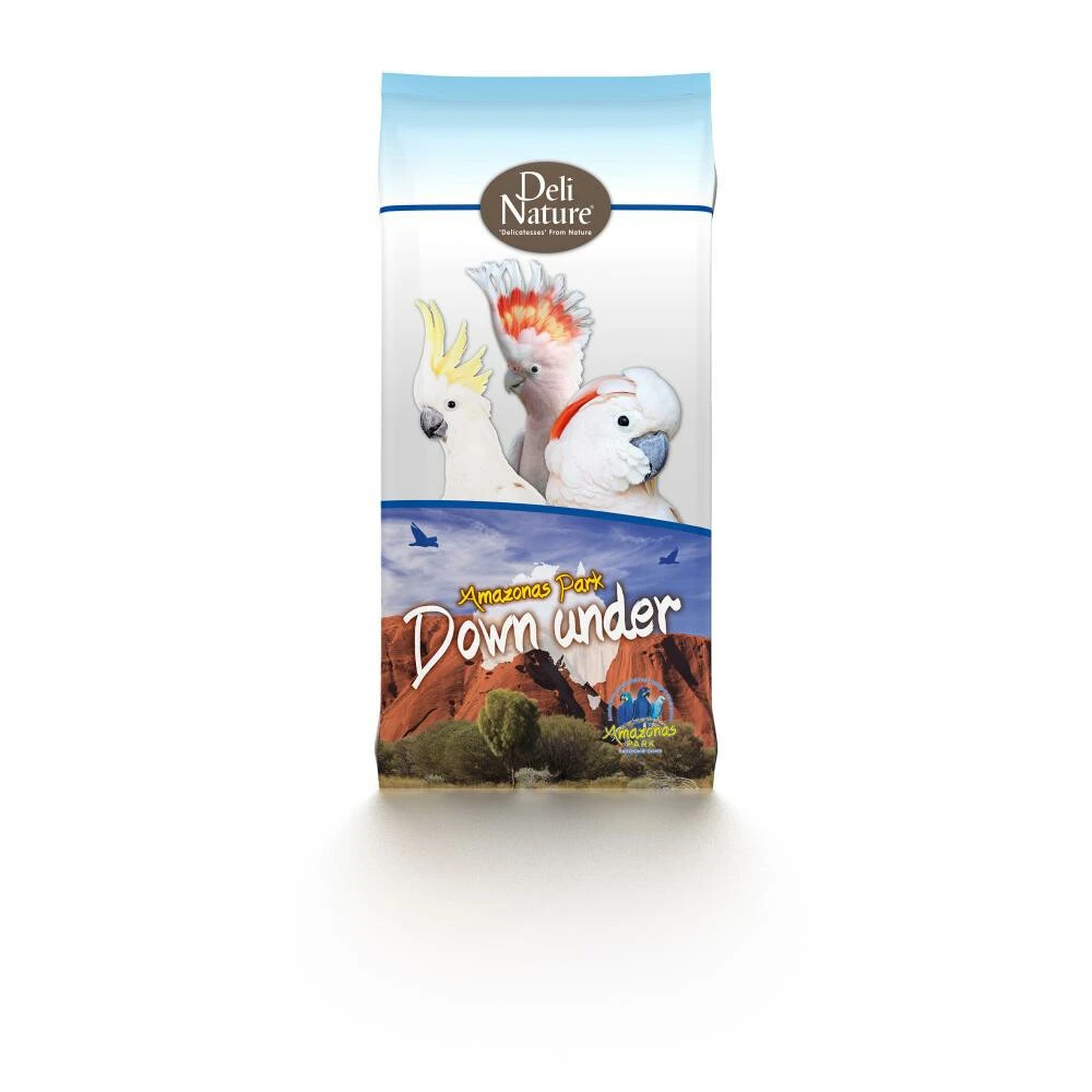 Deli Nature Down UnderDown Under van Deli Nature is een unieke, uitgebalanceerde mengeling voor alle Australische papegaaien en kaketoes (m.u.v. roseneacute; kaketoes en palmkaketoes). Met vitsen, marieneuml;ndistel en kleinere zaadsoorten zoals kanariezaad, millet. Verrijkt met rozijntjes, appelstukjes, bananenschijfjes, wortelstukjes en chili pepers. Met geextrudeerde pellets voor extra vitaminen, aminozuren. Met grit en is verkrijgbaar in 15 kg.Unieke, uitgebalanceerde mengeling voor alle Aus