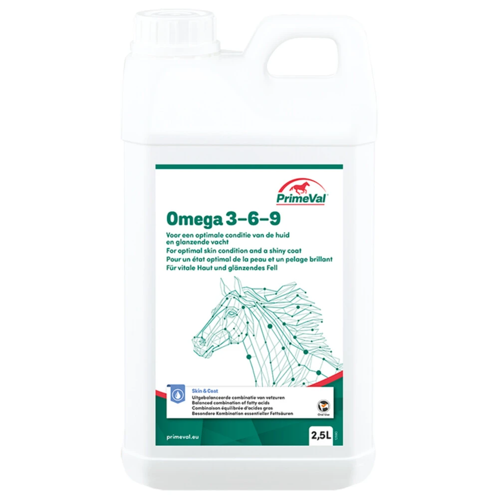 Primeval Omega 3-6-9PrimeVal Omega 3-6-9 is uniek doordat het vijf verschillende oliën bevat die elk over andere, specifieke eigenschappen beschikken. De oliën onderscheiden zich niet alleen van elkaar qua vetzuursamenstelling, maar bevatten ook verschillende antioxidanten, vitamines en mineralen. Veel omega-3 oliën zijn gemaakt op basis van visolie, aangezien paarden kieskeurig zijn vinden zij dat vaak niet lekker. PrimeVal Omega 3-6-9 is geheel plantaardig en wordt dus door