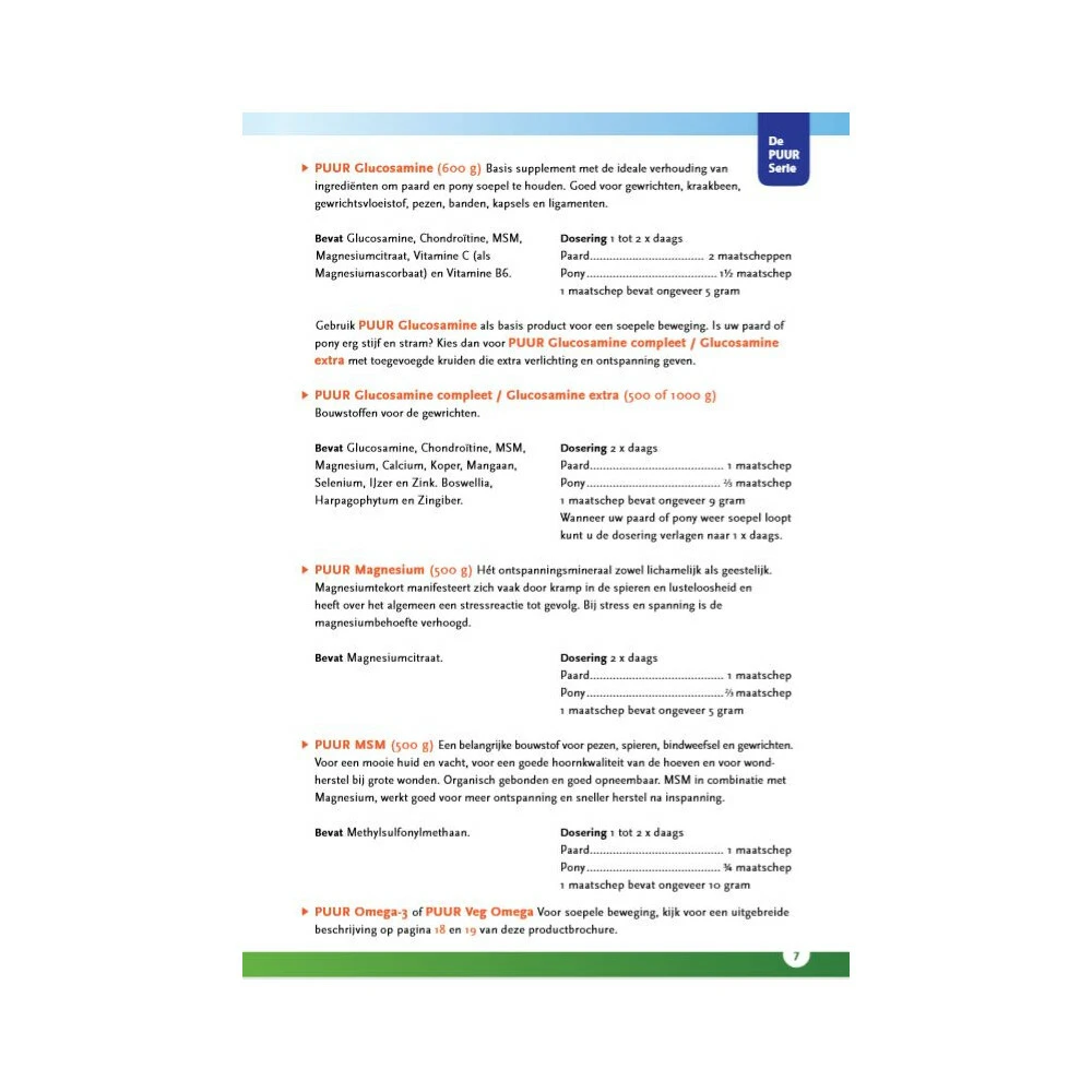 PUUR MagnesiumPUUR Magnesium is geschikt voor paarden en ponyu0027s en zorgt voor lichamelijke en geestelijke ontspanning. Dit supplement zorgt voor ontspanning, een goede energieproductie en helpt kramp te verminderen.Reguleert de neurotransmitters en spiercontractieVoor goed functioneren van het centrale zenuwstelselVermindert lusteloosheidvoor een betere glucosestofwisseling