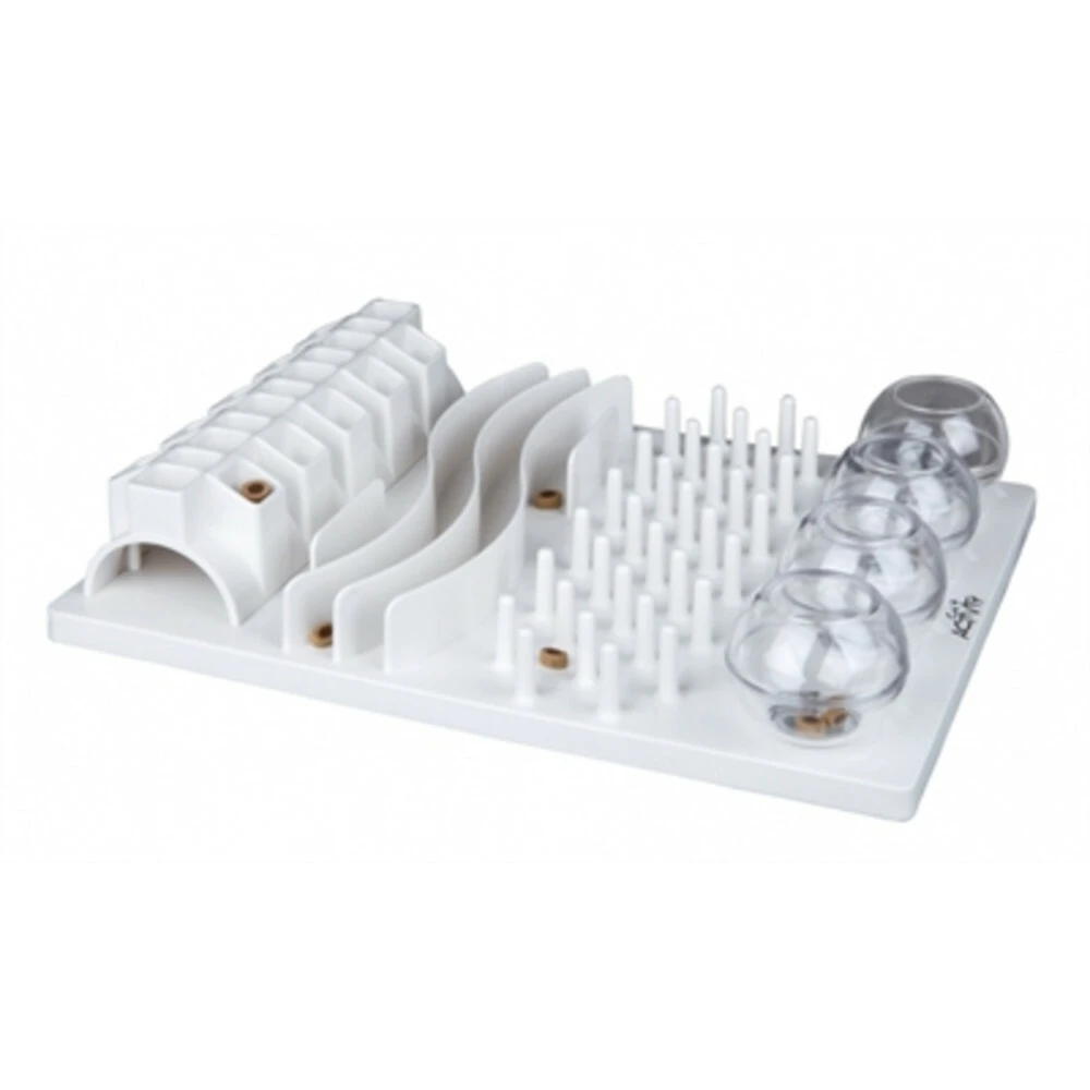 Trixie Cat Activity Fun BordDit Trixie Cat Activity Fun Bord kattenspeelgoed daagt jouw kat spelenderwijs uit zijn beloning te vinden. Het uitdagende Trixie Cat Activity Fun Bord bordspel bevat vijf verschillende spellen waarmee je jouw kat kunt uitdagen om op een speelse manier een snack te verdienen.Leg een snack of brokje in de tunnel, in een vakje, een gleuf, tussen de pinnen of in een van de bakjes. De kat zal zijn pootjes en behendigheid moeten gebruiken om de beloning te pakken te kr